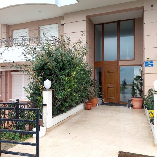 Το διαμέρισμα βρίσκεται στον δεύτερο όροφο μιας ωραίας πολυκατοικίας, η οποία βρίσκεται μπροστά στην θάλασσα με την υπέροχη αμμουδερή παραλία. Η πολυκατοικία είναι κατασκευής 2005. Το διαμέρισμα διαθέτει πατώματα παρκέ από ποιοτικό ξύλο. Διπλούς υαλοπίνακες στα παράθυρα με σίτες και πλαίσια αλουμινίου. Κεντρική θέρμανση πετρελαίου, κλιματιστικά, και πόρτα ασφαλείας. Διαθέτει μία θέση πάρκινγκ και ανελκυστήρα. Η Αγία Τριάδα είναι μία ιδιαίτερη κωμόπολη με φυσική ομορφιά και αμμουδερές παραλίες. Απέχει από το αεροδρόμιο 15χλμ και από την πόλη της Θεσσαλονίκης 24χλμ