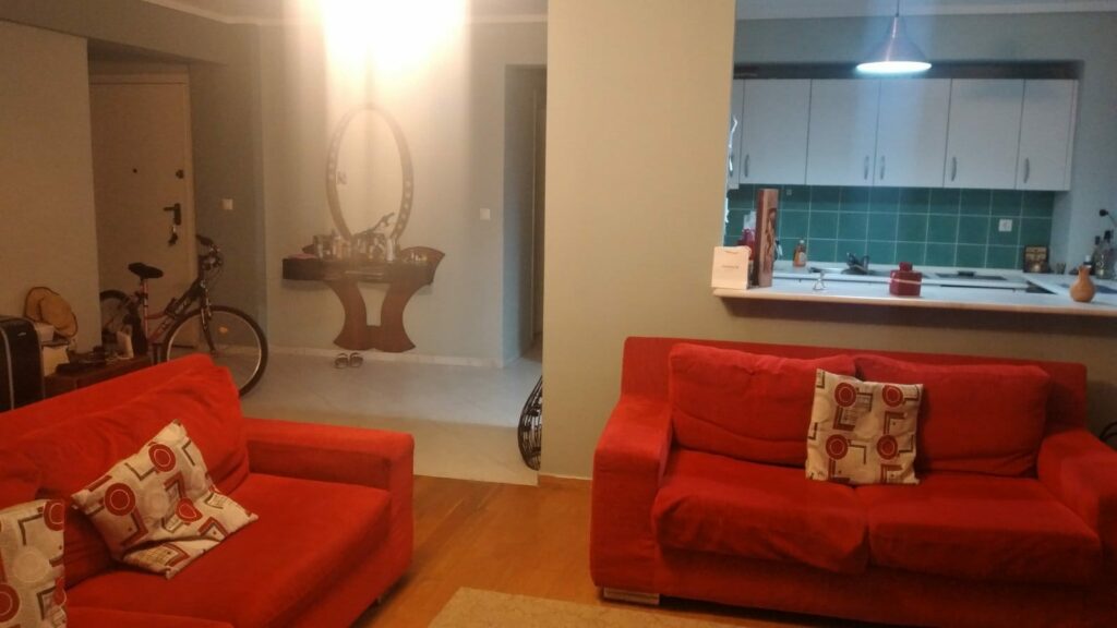 2 υπνοδωμάτια,1 μπάνιο, 1 σαλόνι-κουζίνα, διάδρομο, 1 wc, μπαλκόνια με θέα προς την θάλασσα.