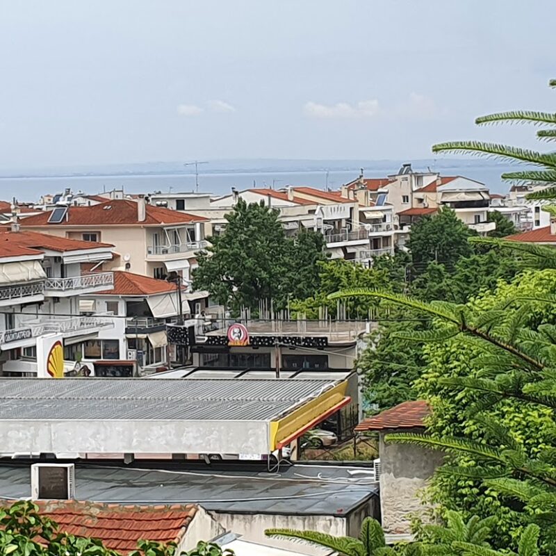 Διαμέρισμα 2] Βρίσκεται στον πρώτο όροφο και αποτελείται από 2 υπνοδωμάτια, 1 σαλόνι-κουζίνα, 1 μπάνιο ,και έχει μπαλκόνια από την μπροστινή πλευρά και από την πίσω όπου έχει και θέα προς την θάλασσα. Τα πατώματα στα υπνοδωμάτια είναι ξύλινα, τα υπόλοιπα είναι πλακάκια. Τα διαμερίσματα έχουν θέρμανση με φυσικό αέριο. Διαθέτουν κλιματιστικά. Το διαμέρισμα στον πρώτο όροφο είναι πλήρως επιπλωμένο. Βρίσκονται εντός της οικιστικής περιοχής και υπάρχουν καταστήματα σε κοντινή απόσταση. Το κτίριο είναι κατασκευής του 1996. Η απόσταση από την παραλία είναι 18οο μέτρα. Το αεροδρόμιο απέχει 11χλμ. και η πόλη της Θεσσαλονίκης 17 χλμ.