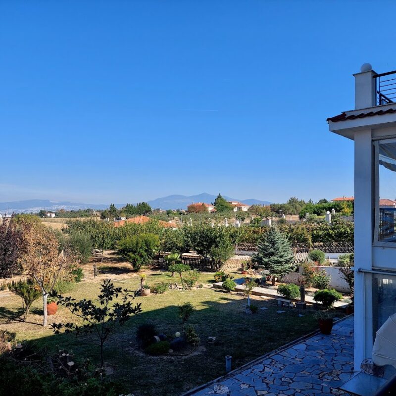Η Μεζονέτα βρίσκεται σε μία πανέμορφη περιοχή με πολύ πράσινο και απεριόριστη θέα προς τον Θερμαϊκό κόλπο και την πόλη της Θεσσαλονίκης. Το οικόπεδο πού την περιβάλει είναι 5400τμ. Αποτελείται από τρία επίπεδα.