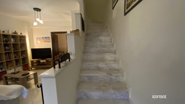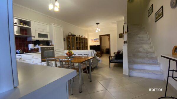 Η Μεζονέτα βρίσκεται σε κεντρικό σημείο του χωριού με άμεση πρόσβαση στην αγορά. Αποτελείται από τρείς ορόφους. Διαθέτει ατομική θέρμανση πετρελαίου, κλιματιστικά ,τζάκι. Διπλά τζάμια στα παράθυρα με συνθετικά πλαίσια. Πατώματα με ποιοτικά πλακάκια και πόρτα ασφαλείας. Αυλή μπροστά και πίσω. Έτος κατασκευής 2005.
