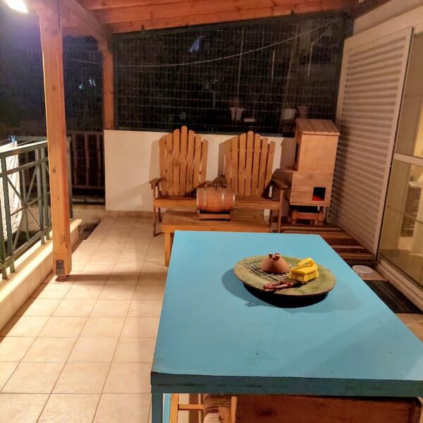 Η Μεζονέτα βρίσκεται σε τριώροφη οικοδομή κατασκευής 2000 και καταλαμβάνει τον ισόγειο χώρο και το ημιυπόγειο. Είναι ένα σπίτι σε πολύ καλή κατάσταση και βρίσκεται σε μια ωραία και ήσυχη περιοχή . Απέχει 500 μέτρα από το κέντρο και από την παραλία. Διαθέτει πλακάκια στα πατώματα, ατομική θέρμανση με πετρέλαιο, διπλούς υαλοπίνακες στα παράθυρα με σίτες και πλαίσια αλουμινίου. Διαθέτει εσωτερικό γκαράζ και βεράντες με πέργκολα μπροστά και πίσω. Η απόσταση από το αεροδρόμιο είναι 17χλμ και από την πόλη της Θεσσαλονίκης 26χλμ.