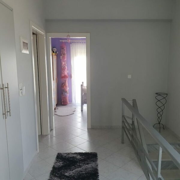 Η μονοκατοικία βρίσκεται σε συνοικισμό σε κτήμα 2500τμ με απέραντη θέα προς τον Θερμαϊκό κόλπο και προς το βουνό του Ολύμπου. Αποτελείται από τον πρώτο και τον δεύτερο όροφο, και διαθέτει υπόγειο επίσης στο οποίο υπάρχει ο λέβητας πετρελαίου και αποθηκευτικοί χώροι. Ο πρώτος όροφος αποτελείται από 1 σαλόνι-κουζίνα, 1 δωμάτιο,1 μπάνιο, βεράντες.  Ο δεύτερος όροφος περιλαμβάνει 3 υπνοδωμάτια, 1 μπάνιο, διάδρομο, βεράντες.15τμ. ΟΙ πόρτες και τα παράθυρα έχουν πλαίσια από αλουμίνιο, τα πατώματα έχουν πλακάκια, οι σκάλες μάρμαρο. Θέρμανση με λέβητα πετρελαίου, κλιματιστικά, συναγερμό, ηλιακό θερμοσίφωνα για ζεστό νερό. Υπάρχει κλειστό γκαράζ για ένα αυτοκίνητο και θέσεις πάρκινγκ για περισσότερα Ένα μέρος του κτήματος είναι διαμορφωμένο με γκαζόν και άνθη, το υπόλοιπο έχει μερικά δέντρα ,ωστόσο το μεγαλύτερο μέρος είναι άδειο, μπορεί να διαμορφωθεί με πισίνα, μπάρμπεκιου, πέργκολες  ,να φυτευτούν δέντρα η όποιες άλλες ιδέες έχει ο καθένας. Στην τιμή συμπεριλαμβάνονται, οι εντοιχισμένες, ντουλάπες και η εντοιχισμένη κουζίνα. Χρονολογία ανέγερσης το 2000. Η απόσταση από την παραλία είναι 1900 μέτρα. Το αεροδρόμιο απέχει 25χλμ και η πόλη της Θεσσαλονίκης 32χλμ.