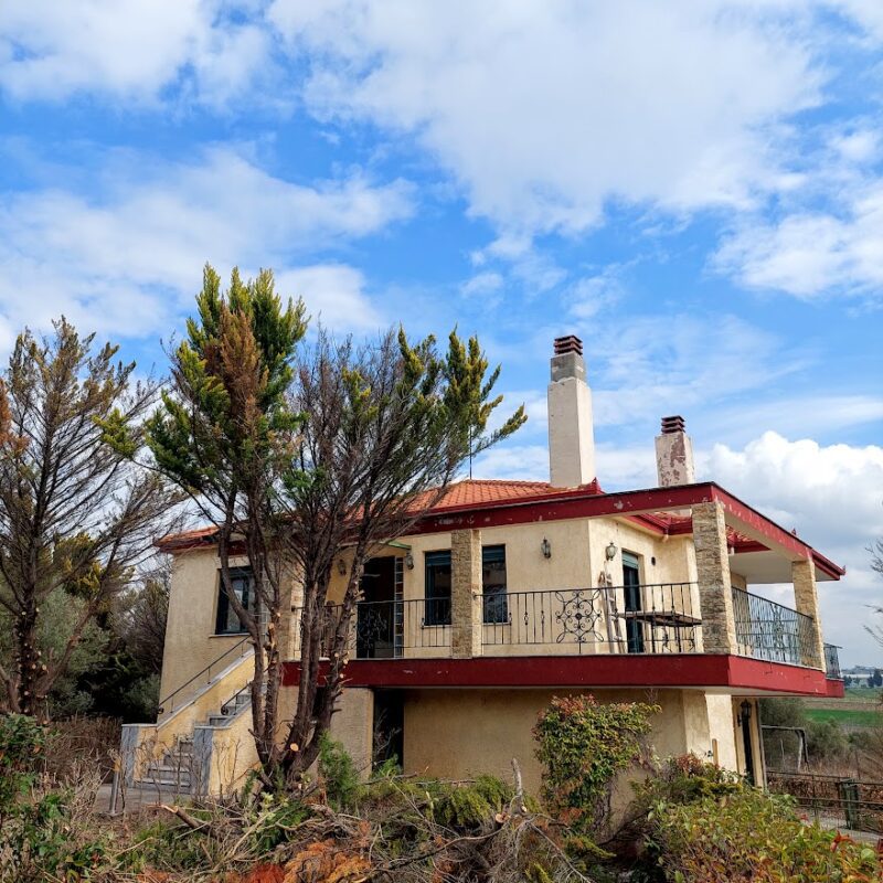 Das Haus befindet sich in Epanomi der Gemeinde Thermaikos in einem Bauernhof von 8000qm eingezäunt, mit 35 Olivenbäumen und verschiedenen anderen Bäumen. Es ist 250 sq.m. und erstreckt sich über zwei Ebenen.