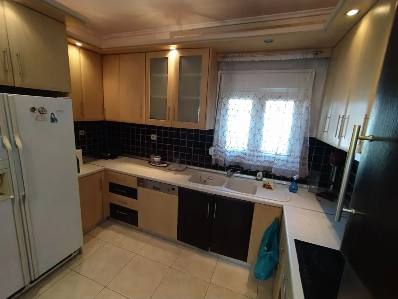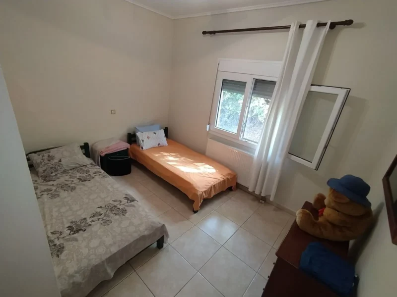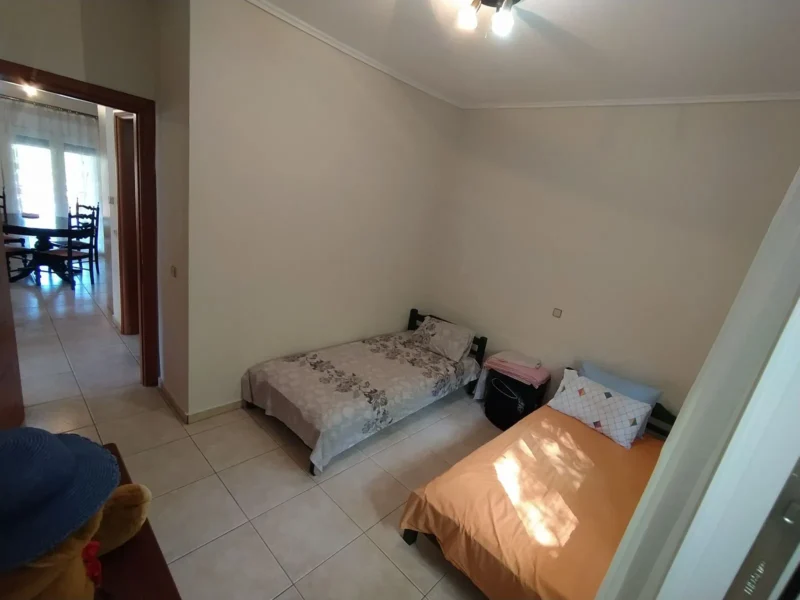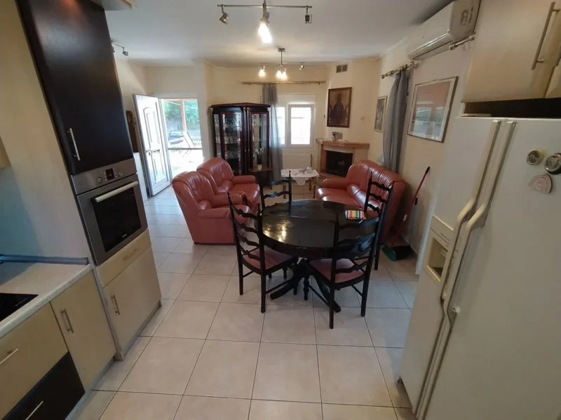 Kassandrino Chalkidiki, Haus zu verkaufen 145qm in 2 Ebenen auf einem Grundstück von 400qm. Es besteht aus 2 unabhängigen Wohnungen, eine Wohnung von 70qm im Erdgeschoss und eine Wohnung von 70qm im zweiten Stock. Jede Wohnung verfügt über ein Wohnzimmer mit Kamin, eine separate Küche, zwei komfortable Schlafzimmer und eine Toilette. Sie haben für die Heizung Heizkörper mit unabhängigen Ölkessel, große Ecke Balkon, Garten. Es ist zu verkaufen, wie es eingerichtet ist und mit allen elektrischen Geräten. Das Haus kann nach Belieben und separat als 2 unabhängige Wohnungen genutzt werden, und sie entsprechend zu nutzen. Es befindet sich in einer sehr guten und ruhigen Lage mit freiem Blick ins Dorf. Es hat Fenster mit Doppelverglasung, Kunststoffrahmen und Fliegengitter. Es verfügt über 2 Parkplätze, einen privaten Garten und ist für Menschen mit Behinderungen zugänglich. Die Entfernung zum Strand beträgt 6 km und zum Flughafen Thessaloniki 82 km oder 70 Minuten mit dem Auto.