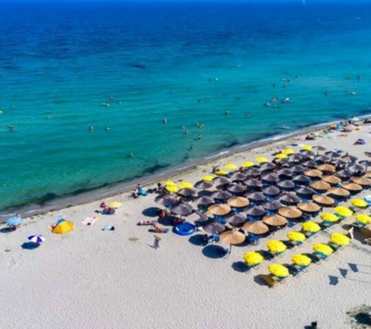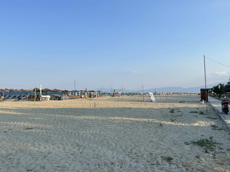 Sie hat eine breite, mehrere Kilometer lange Sandküste mit feinem, sauberem Sand und flachem Meer. Entlang der Küste gibt es Hotels, Zimmervermietungen, Campingplätze sowie zahlreiche Fischtavernen, Cafés, Clubs und andere Nachtlokale.