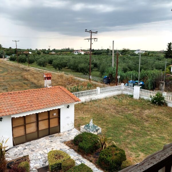 Das Haus befindet sich in der Gegend von Arizona in Nea Herakleia 1500 Meter vom Sandstrand und der berühmten Beachbar SAHARA entfernt. Das Grundstück ist 1075 qm groß. Es hat Fliesenböden, Aluminiumrahmen an den Fenstern im ersten Stock und Holzfenster im zweiten Stock. Klimaanlage nur in der ersten Etage. Individuelle Heizung mit Ölkessel. Balkone rundherum auf allen Etagen. Meerblick von der ersten Etage. Solarboiler für Warmwasser. Das Haus wird mit allen Möbeln und Elektrogeräten geliefert. Das Grundstück ist wunderschön begrünt. Der Grill befindet sich in einem speziell angelegten, geschlossenen Bereich mit Küche, Essbereich. und Außendusche und WC. Perfekt für unterhaltsame Abende auch bei schlechtem Wetter. Das Haus ist 1988 gebaut worden. Das Äußere benötigt einige Reparaturen.