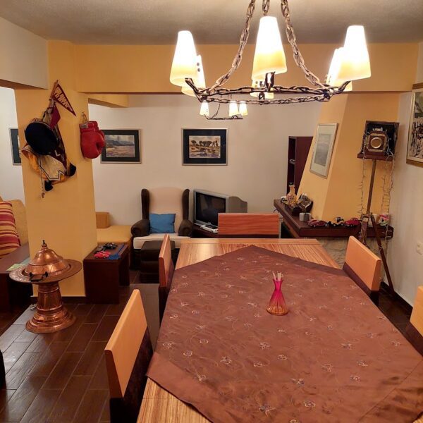 Es befindet sich in Taxiarchis, Chalkidiki, umgeben von Buchen, Eichen und Tannen. Die nächsten Strände von Chalkidiki sind 25 Minuten mit dem Auto entfernt. Es verfügt über eine Ölheizung, Fliesen auf einer Etage und Holzböden auf der anderen. Sicherheitstür, doppelt verglaste Fenster mit Holzrahmen und Fliegengitter. Solarboiler für Warmwasser in den Sommermonaten. Satelliten-TV-Antenne. Grill im Garten, externer Abstellraum 16qm und Heizungsraum. Die dazugehörige Freifläche beträgt 1000qm und gehört zu einem Wohnkomplex, von dem einige ständig bewohnt sind. Das Haus wurde 2007 gebaut, befindet sich in einem ausgezeichneten Zustand und wird möbliert und mit allen Elektrogeräten ausgestattet zum Verkauf angeboten.