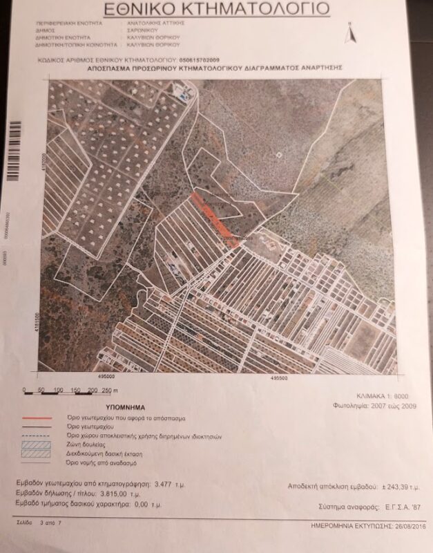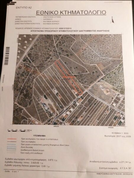 Das Grundstück befindet sich in der Gemeinde Saronikos im Bezirk Olympos. Es bietet einen herrlichen Blick auf den Saronischen Golf und ist 5 km vom Meer entfernt. Es liegt an einer Gemeindestraße und hat 46 Olivenbäume. Es hat eine Front von 34 Metern und eine Länge von 212 Metern an der Straße. Da es 2 Verträge gibt, 1 mit 3873qm und 1 mit 3477qm, können sie separat verkauft werden. Strom- und Wasserversorgung befinden sich an der Grenze. In der Gegend gibt es schöne freistehende Häuser, die ständig bewohnt sind.