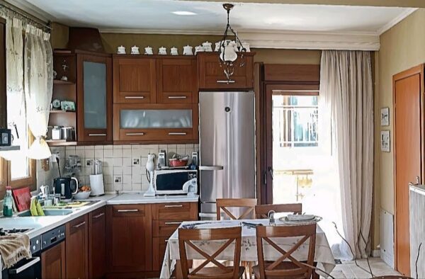 Maisonette-Wohnung von 208m² zum Verkauf in privilegierter Lage im Zentrum von Trilofos von Thessaloniki, nur 8km vom Meer entfernt. Es handelt sich um ein beeindruckendes Haus aus dem Jahr 2006, das auf drei Ebenen gebaut wurde und über eine hervorragende Aufteilung und viele Annehmlichkeiten verfügt.
