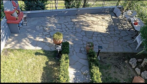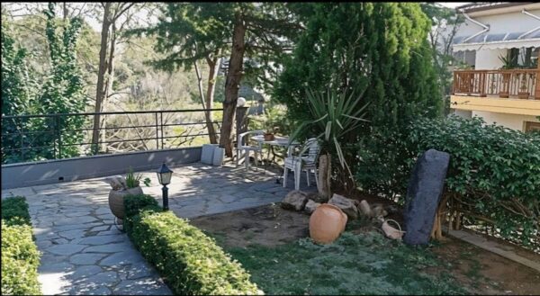 Die Immobilie befindet sich auf einem 500m² großen Grundstück und verfügt über einen 150m² großen privaten Garten, eine 150m² große Veranda und einen Parkplatz. Die Lage in Trilofo verbindet die Ruhe der Vororte mit der leichten Erreichbarkeit des Zentrums von Thessaloniki und des Meeres von Perea und Epanomi und bietet eine hohe Lebensqualität.