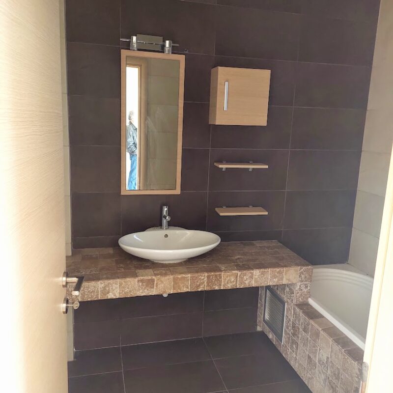 1] Halbunterkellerte Wohnung mit 1 Schlafzimmer, 1 Wohnküche, 1 Badezimmer, Abstellraum, in dem sich der Ölkessel befindet. Es hat Helligkeit durch die Fenster, geflieste Böden, Einbauküche, Schränke. Es kann auch als eigenständige Wohnung genutzt werden, da es einen eigenen Eingang hat.