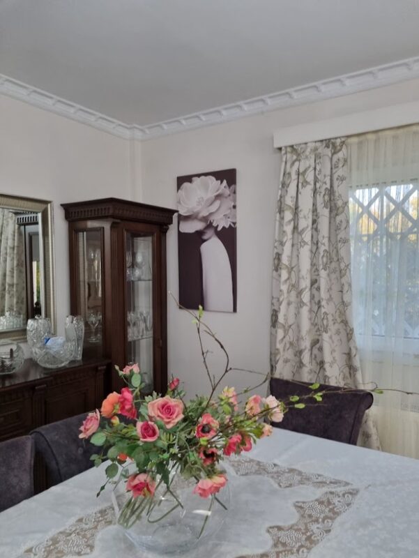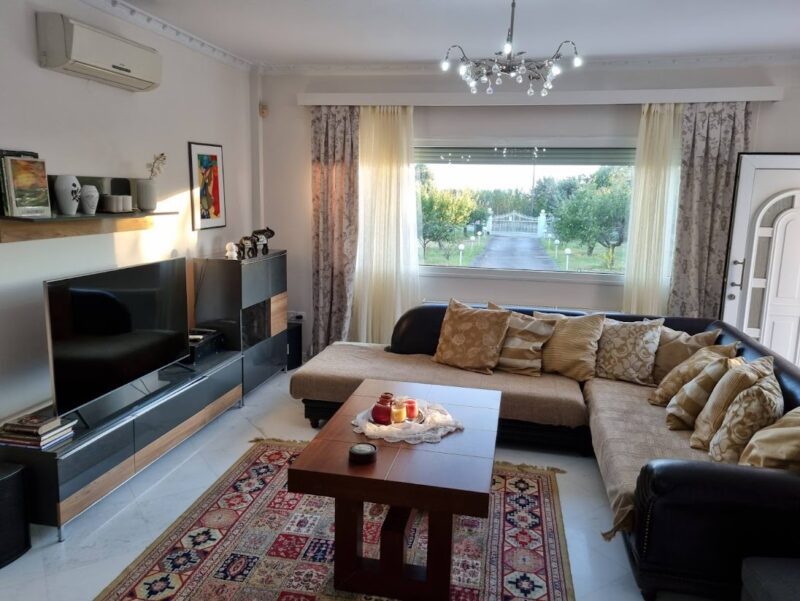Das Gebäude wurde modernisiert und ist von außen wärmegedämmt. Es hat eine Solaranlage für die Warmwasserbereitung. Die Innenräume haben doppelt verglaste Fenster, Kunststoffrahmen und Bildschirme. Klimatisierung und autonome Heizung mit Erdgas. Die Böden und Treppen sind mit hochwertigen Granit- und Marmorfliesen belegt. Zentraler Sicherheitseingang. Eine charmante Villa, die sich in einem ruhigen eingezäunten und gepflegten Grundstück von 5000 qm mit vielen Bäumen und Zierpflanzen erstreckt, mit romantischer Beleuchtung bietet Privatsphäre, ideale Bedingungen für gesundes Leben, eine Umgebung der Entspannung und Ruhe, so dass wir uns wunderbar, komfortabel und bequem fühlen und es vom ersten Moment an lieben. Die Entfernung zum nächsten Strand beträgt 800 m und der Flughafen von Thessaloniki ist 12 km entfernt.