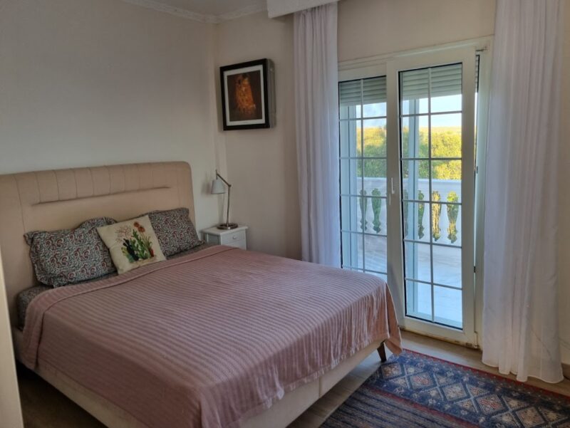 3} Im ersten Stock befinden sich 3 Schlafzimmer, eines davon mit eigenem Bad, große Veranden mit Panoramablick auf das Meer und die Berge.