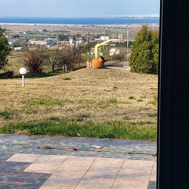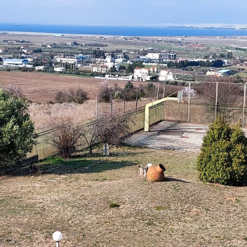 Die Villa befindet sich in einer wunderschönen Lage, mit viel Grün rundherum, mit freiem Blick auf das Meer, auch vom Erdgeschoss. Es erfüllt alle Voraussetzungen für angenehmes Wohnen in einer gesunden und entspannenden Umgebung. Es ist eine schwere und sorgfältige Konstruktion, da es für den Eigengebrauch gebaut wurde. Der Strand ist 3 km entfernt. Der Flughafen ist 5 km und die Stadt Thessaloniki 15 km entfernt.