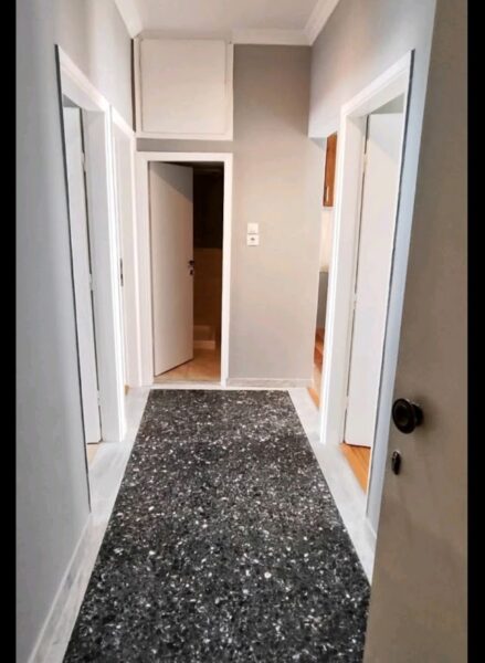 Die Wohnung befindet sich in einer Hauptstraße in Ilioupolis. Geschäfte und die Haltestelle der öffentlichen Verkehrsmittel befinden sich in der Nähe. Das Gebäude besteht aus drei Etagen mit zwei Wohnungen auf jeder Etage. Das Gebäude wurde 1976 erbaut und hat keinen Aufzug. Die Wohnung wurde im Jahr 2025 komplett renoviert. Sie hat Fliesenböden, Laminat und im Flur Mosaik. Fenster mit Kunststoffrahmen und Doppelverglasung. Fliegengitter an allen Balkontüren, Markisen vorne und hinten an den Balkonen, eine davon elektrisch. Neue Elektro- und Sanitärinstallationen. Zwei Klimageräte. Die Wohnung ist hell und befindet sich in der zweiten Etage.