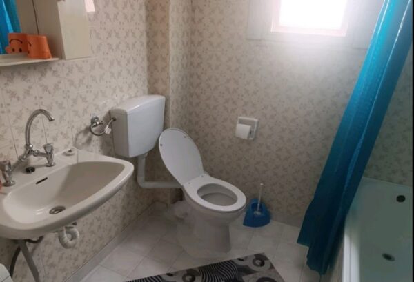Die Wohnung befindet sich in einem zentralen Teil von Nea Kallikratia. Alle Geschäfte befinden sich in der Nähe. Der Strand ist 550 Meter entfernt. Die Wohnung ist in sehr gutem Zustand und befindet sich im dritten Stock ohne Aufzug. Sie hat Laminatböden, Aluminiumrahmen an den Fenstern mit Doppelverglasung. Sie ist möbliert, hat einen Abstellraum und eine Heizung mit Klimaanlage.