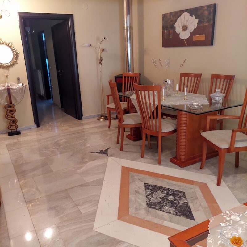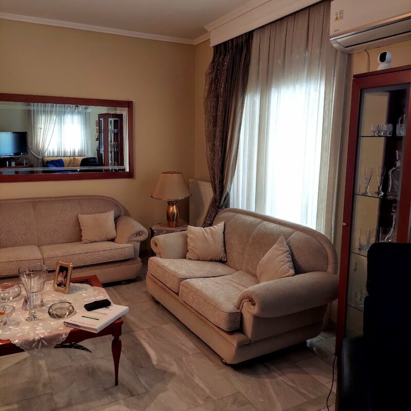 Die Wohnung befindet sich im Zentrum von Nea Michaniona, in einem zweistöckigen Haus, das die erste Etage einnimmt. Es handelt sich um eine gepflegte Wohnung mit einer Kellerfläche von 85 qm und dem Recht zur exklusiven Nutzung des Dachgeschosses. Auf dem Dach gibt es einen Grill und einen kleinen Abstellraum. Es hat große Terrassen mit Essbereich und Markisen. Die Böden sind aus Granitfliesen, die Fenster haben Doppelverglasung und Aluminiumrahmen. Heizung mit Ölkessel und mit Ofen. Baujahr 1986. Der Traum eines Lebens. Wird wie abgebildet möbliert geliefert. Alles sind Qualitätsmöbel.