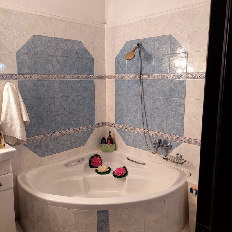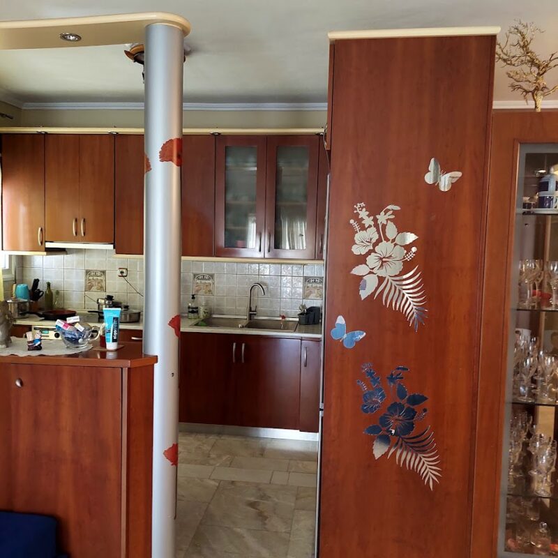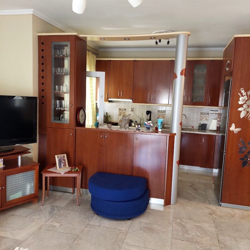 Es besteht aus 3 Schlafzimmern, 1 Wohnküche mit Essbereich, Kamin, 2 Bädern, Flur. Die Wohnung wird mit allen Möbeln und Elektrogeräten geliefert. Abgesehen vom Eigenheim ist sie ideal für die professionelle Nutzung durch touristische Vermietungen. Die Geschäfte befinden sich in der Nähe und der Strand ist 450 Meter entfernt. Der Flughafen ist 17 km entfernt und die Stadt Thessaloniki 25km.