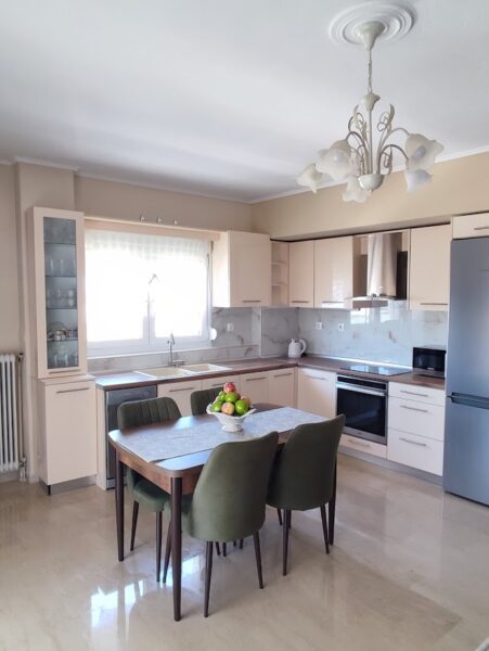 Das Apartment befindet sich im Zentrum von Perea, 150 Meter vom Sandstrand entfernt. Alle Geschäfte und Tavernen befinden sich in der Nähe. Sie befindet sich im vierten Stock eines gut gepflegten Apartmenthauses. Die Schlafzimmer haben Parkettböden und die anderen Räume sind gefliest. Sie verfügt über eine Klimaanlage, eine Öl-Zentralheizung, einen Aufzug, Doppelverglasung in den Fenstern mit Kunststoffrahmen. Ein Parkplatz. Es wurde 2003 erbaut. Der Flughafen ist 11 km entfernt und die Stadt Thessaloniki 20 km.