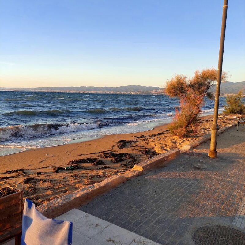 Die Wohnung befindet sich in der vierten und obersten Etage des Gebäudes, mit Zugang zum Dach, wo es einen Abstellraum und die Möglichkeit gibt, einen Grill anzulegen, mit unbegrenztem Blick auf das Meer und die Stadt Thessaloniki. Es ist nur 80 Meter vom Sandstrand entfernt, hat einen Panoramablick auf das Meer, ist vollständig mit hochwertigen Materialien renoviert, möbliert und mit allen Haushaltswaren und Elektrogeräten ausgestattet. Es verfügt über eine Klimaanlage, Granitplattenböden, Fenster mit Doppelverglasung und Kunststoffrahmen, Gasheizung, Kamin, Sicherheitstür, Balkone, Aufzug. Ein angenehmes Apartment, das Ihnen Momente der Entspannung und Erholung bietet, in denen Sie das blaue Meer und die schönen Sonnenuntergänge genießen können. Baujahr 1997. Es hat einen Parkplatz.
