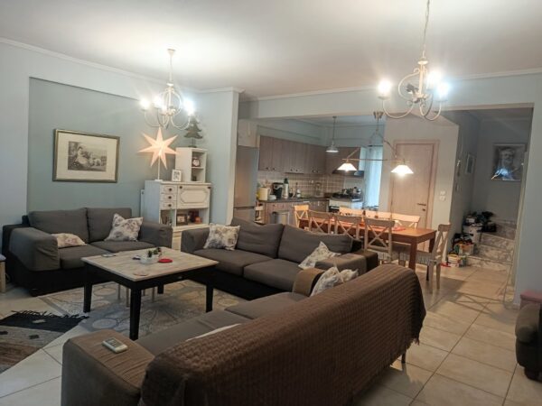 Die Maisonette-Wohnung befindet sich in Aggelochori in schöner Lage mit freiem Blick auf das Meer und den Berg Olympus. Die Bushaltestelle ist nur 50 Meter entfernt. Sie ist vollständig renoviert und verfügt über eine Einbauküche. Die Möbel können auch im Haus belassen werden. Es verfügt über einen Energiekamin, Klimaanlage, Doppelverglasung an den Fenstern, Aluminiumrahmen und Mückengitter.