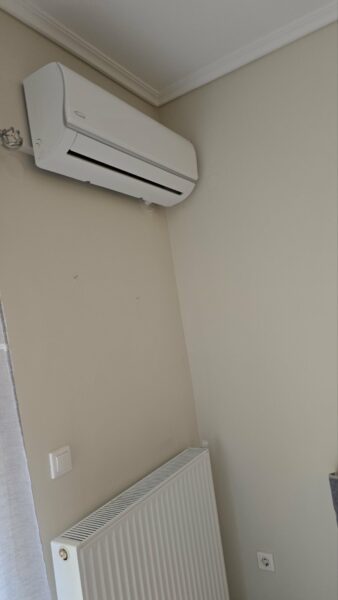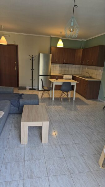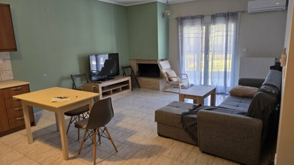 The apartment is located on Vazaka Street in Nea Michaniona. It is located on the first floor. The building has an elevator. It has tiled floors, double glazing and synthetic frames on the windows, air conditioning, individual heating with oil. It is furnished and equipped with the necessary electrical appliances The rent includes water, utilities and Internet. It is rented from 28-09 -2025 until 31-06-2026, Ideal for students of the Nautical School.