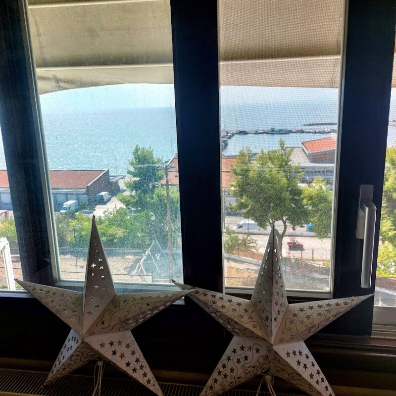 The shops are in the vicinity, and the beach is 150 meters away. Nea Michaniona is famous for the largest medium fishing fleet in Greece (the installation of the fish market in 1998, made it a center of administration and marketing of fish and shellfish in all of Northern Greece) and for the Merchant Navy Academy (since 1968) which provides well-trained officers in Greek and not only Greek shipping. Despite its tourist development, it has largely retained the characteristics of a traditional village. So when the sun goes down the central square is filled with people who stroll around, enjoying the famous traditional “loukouma” of Michaniona in one of the cafes located above the fish market and the picturesque harbor or tasting the fresh fish overlooking the endless blue. The airport is 18km away and the city of Thessaloniki 27km