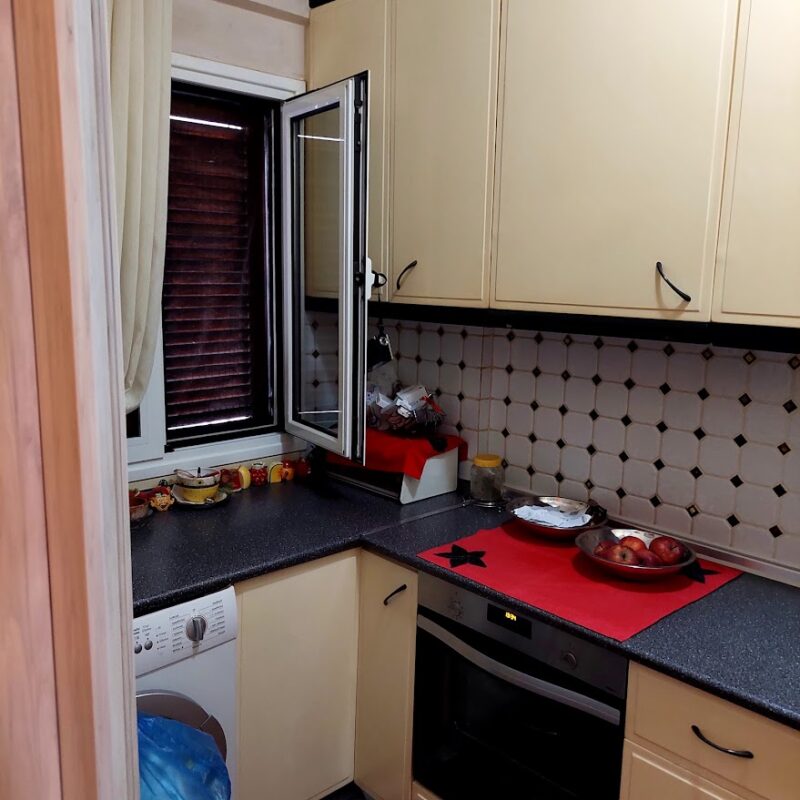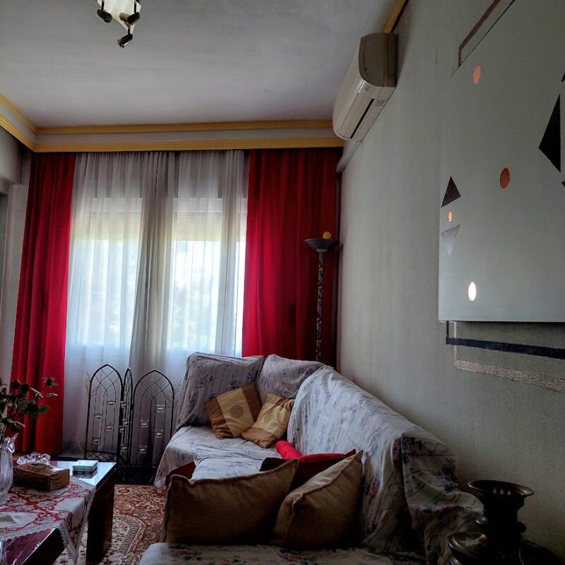 It consists of 1 bedroom, 1 kitchen, 1 living room, 1 dining room, 1 bathroom, balcony overlooking the Thermaikos Gulf and the city of Thessaloniki. It has tiled floors, double glazed windows with aluminium frames. Air conditioners and heaters for heating. The apartment is located on the second floor of a four-storey building with elevator. It is in very good condition, ready for habitation. The beach is 850 meters away, the airport 12 km and Thessaloniki 22 km.