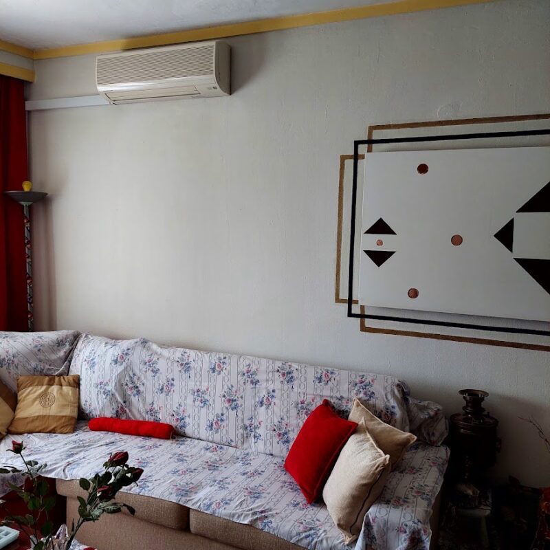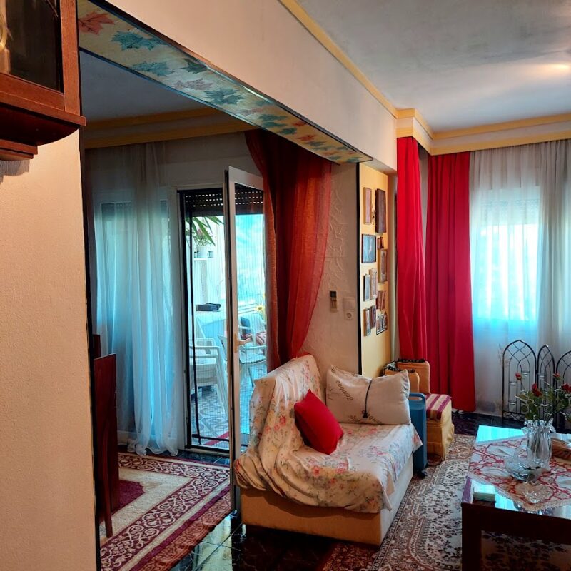 It consists of 1 bedroom, 1 kitchen, 1 living room, 1 dining room, 1 bathroom, balcony overlooking the Thermaikos Gulf and the city of Thessaloniki. It has tiled floors, double glazed windows with aluminium frames. Air conditioners and heaters for heating. The apartment is located on the second floor of a four-storey building with elevator. It is in very good condition, ready for habitation. The beach is 850 meters away, the airport 12 km and Thessaloniki 22 km.