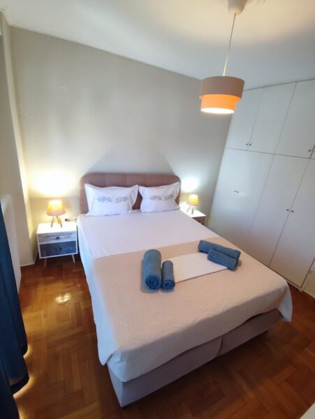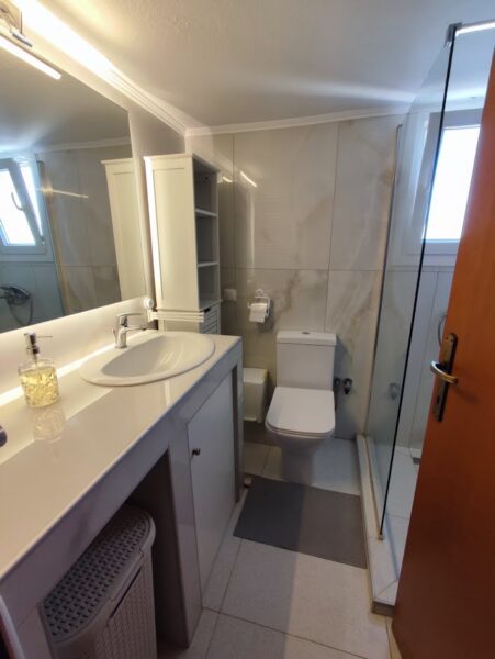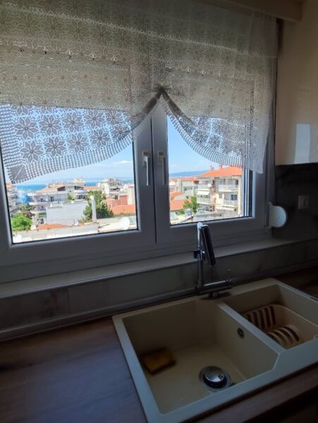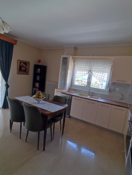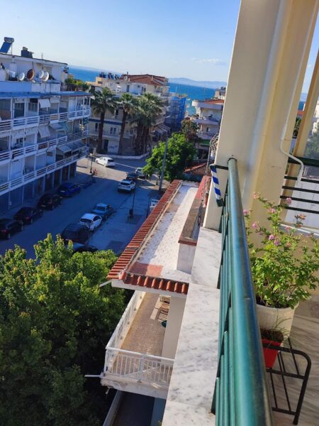 The apartment is located in the center of Perea, 150 meters from the sandy beach. All the shops and taverns are in the vicinity. It is located on the fourth floor of a well-maintained apartment building. The bedrooms have parquet floors and the other rooms are tiled. It has air conditioning, oil central heating, lift, double glazing in the windows with synthetic frames. One parking space. It is built in 2003. The airport is 11 km away and the city of Thessaloniki 20 km.