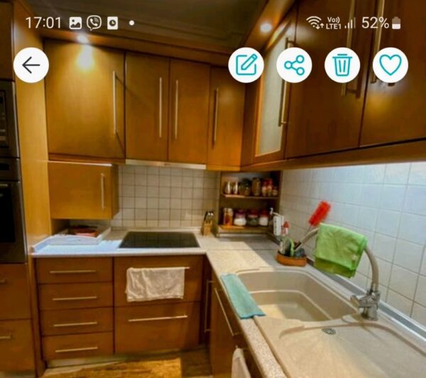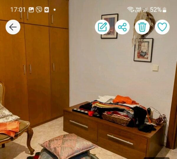 3 bedrooms, 1 living room-kitchen, 1wc, 1 bathroom, hallway, balcony on the bedroom side, veranda 10sqm on the living room side with partial sea view.