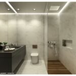 The floors are all covered with large tiles or wood as provided in the architectural plan. The bathrooms are covered with ceramic tiles also of large dimensions, there is a spacious shower cabin, bathroom furniture, and the taps are built-in.