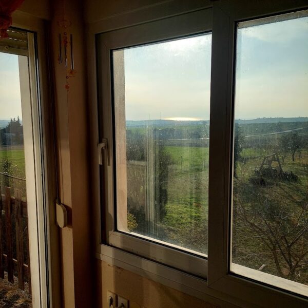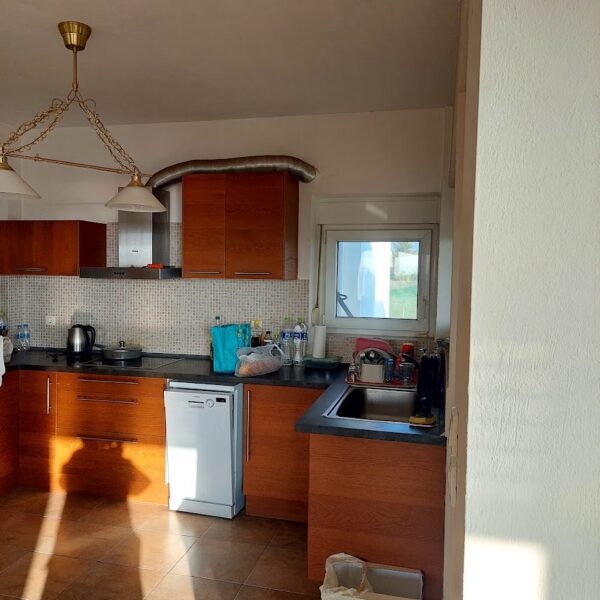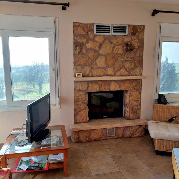 The house is located in a 3500sqm estate with a wonderful view to the sea and the mountain of Olympus. On the estate there are 18 olive trees and various fruit trees. The building is 358sqm of which 180sqm belong to the main house and the rest to the auxiliary rooms. It was built in 2009 for owner-occupancy, with the best seismological standards and with quality materials. It has full external insulation for both cold and heat.