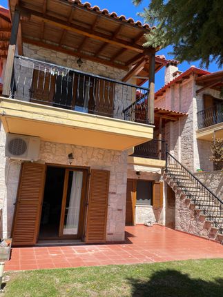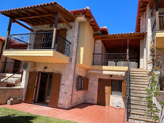 The house is located in the nature in the settlement of Dryades near the village of Taxiarchis in Halkidiki. It is a traditional stone house built in 2005.It consists of 2 bedrooms, 2 bathrooms, 1 kitchen, 1 living room, fireplace. It extends over 2 floors and communicates with internal wooden stairs. It has windows with wooden frames and double glazing and screens, air conditioning, heating with oil boiler, heating alternatively with wood fireplace, security door, balcony, awnings, storage room. It has a large private garden with barbecue, ornamental plants and parking. It is for sale furnished and equipped with all electrical appliances The next beach of Gerakini is 15 minutes by car.