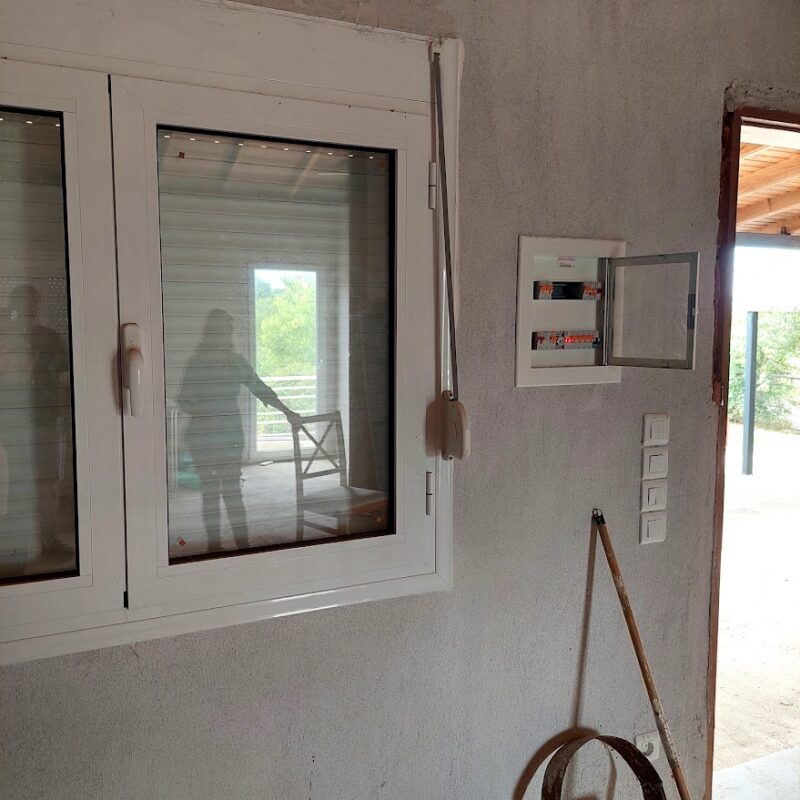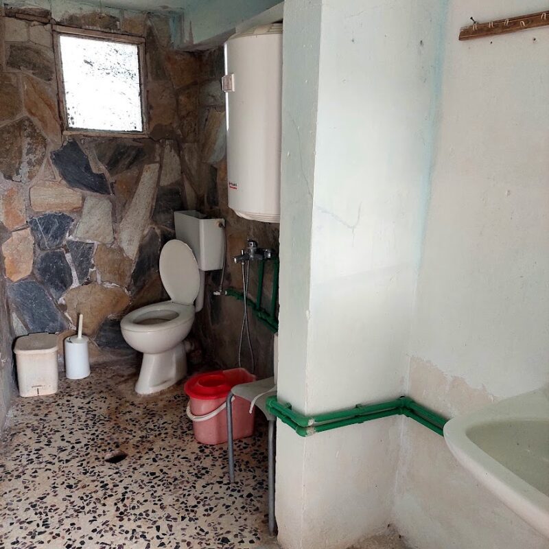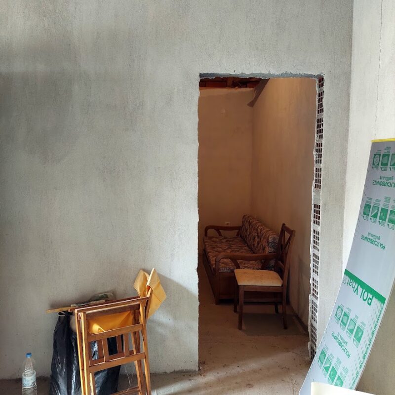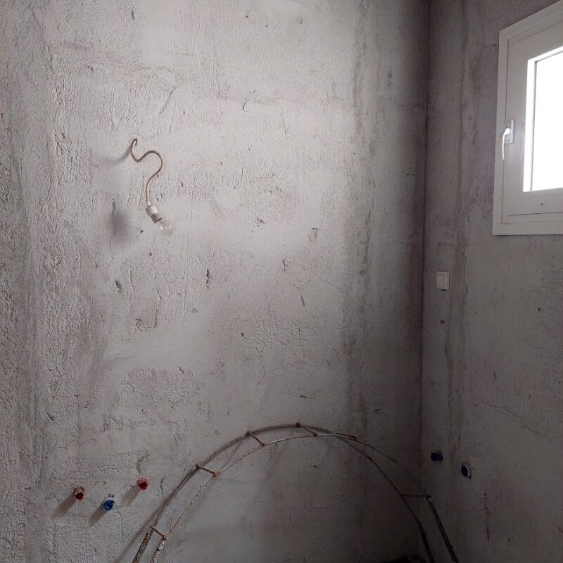 The house is located in Pyrgos Epanomi, and 450 meters from the beach and Baechbar KIMA. The plot is 680sqm and the house is spread over two levels. The first level is 77 sqm and is ready for habitation. It consists of 2 bedrooms, ! kitchen-living room, 1 bathroom. It has a fireplace and heating with wood stove. The second level is 68sqm and is not finished. It has synthetic doors and windows with double glazing, has the partitions and plumbing pre-installations. There are 2 bedrooms, 1 kitchen-living room, 1 bathroom. They can be used as 2 independent apartments as they have separate entrances.