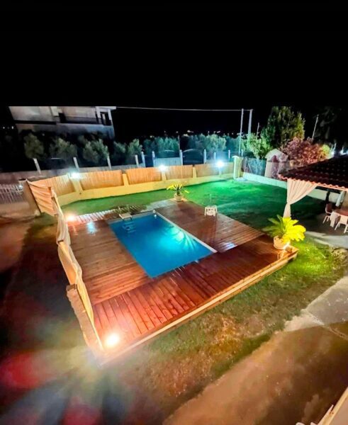 The house is in a wonderful location with absolute quietness and a lot of greenery. It is about 1100 meters from the beach and is ideal for both owner-occupation and for exploitation through tourist rentals. It has tiled floors, double glazed windows with synthetic frames. It has individual heating with inverter air conditioners, fireplace, lovely balconies with open views. The plot is 590 sq.m. It is very nicely landscaped, with parking, flower garden, terrace, pergola, and swimming pool. It is built in 1994 and was completely renovated in 2021. Ideal opportunity for investment.
