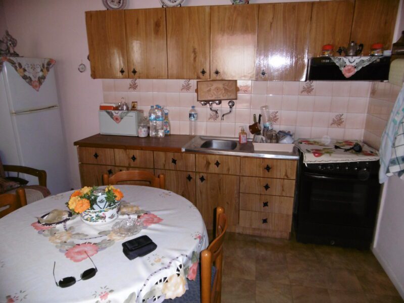 The house is located in Korinos of the prefecture of Pieria is 120sqm on a plot of 640sqm. It consists of 3 bedrooms, 1 large living room, 1 kitchen-dining room, 2 bathrooms. Storage room 18sqm. The floors in the bedrooms are wooden, the rest of the house is made of mosaic. It has a security door, heating with oil stove. Double glazed windows with aluminium frames. It is located in a residential area, and is 2500m from the beach.It is built in 1975. It needs renovation.