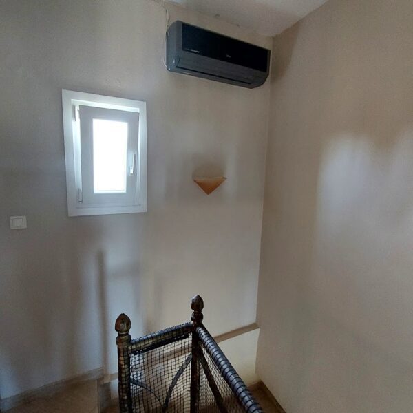 This property consists of two independent residences. It is located in the Anthoupoli district of Nea Kallikratia. It has quality tiles on the floors, synthetic frames on the windows with double glazing and screens. Security doors. Heating with air conditioners. Hot water with electric water heater. The plot is 250 sq.m. In the outside area there is a small storage room of 6sq.m, as well as an outdoor shower. The distance from the sandy beach is 800 meters. The beach is very clean, sandy and very long. Along the beach there are taverns and mini markets. From the balcony of the house we have a view to the sea. The plot is undivided as most of the plots in the area, therefore the transfer of the property is done with a pre-contract. Nea Kallikrateia is 2000 meters away and the airport of Thessaloniki 37 km.