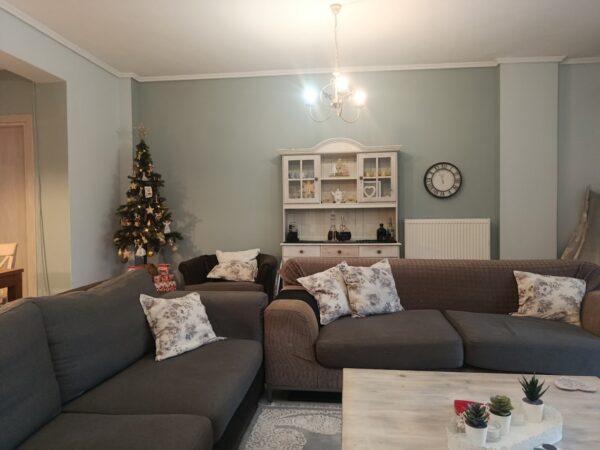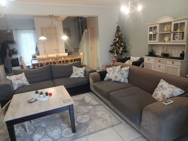 The Maisonette is located in Aggelochori in a nice location with open views to the sea and Mount Olympus. The bus stop is 50 meters away. It is fully renovated and has a fitted kitchen. The furniture can also be left in the house. It has an energy fireplace, air conditioning, double glazing on the windows, aluminium frames and mosquito screens.