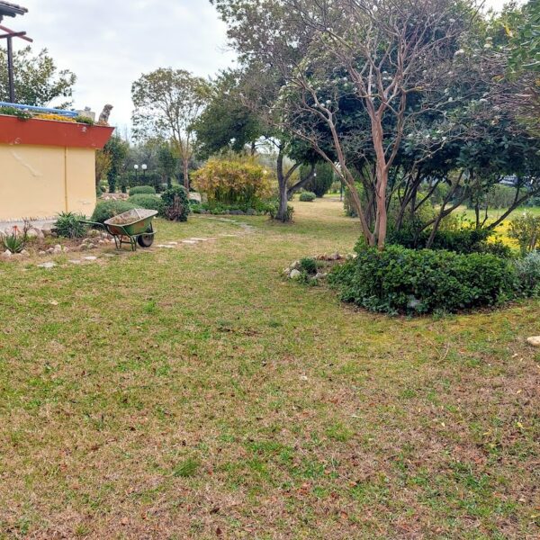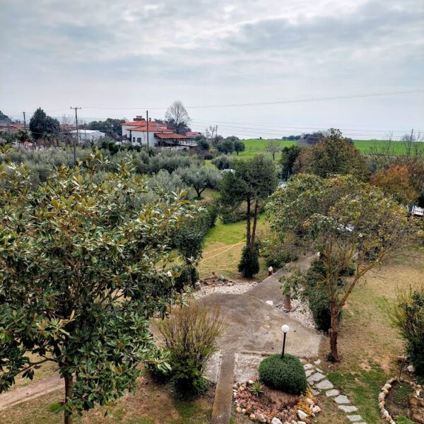 The house is 295 sq.m. and there is also a small house [guest house] 45sq.m. It is located on a 4250sq.m. property which is adjacent to the main asphalt road, Epanomi-Nea Heraklia. It has several fruit trees on the property and olive trees. It is located in a quiet location and 2000 meters from the next sandy beach. We have easy access to Nea Irakleia in 5 minutes by car. The airport is 27km away and the city of Thessaloniki 36km. It has tiled floors, air conditioning in every living room, double glazed windows with aluminum frames. Individual heating with oil boiler. Year of construction 1988. It consists of three independent floors and a separate small house.
