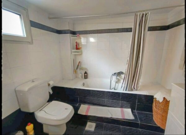 The maisonette has on the ground floor three bedrooms and two bathrooms, while the second level includes a spacious living room with fireplace and a functional kitchen. The property is equipped with modern amenities such as air conditioning, alarm, security door and double glazing, and also has a storage room for a washer-dryer and a playroom. In the semi-basement ,which has its own entrance ,there is a large area with a bar, billiards, storage room and boiler room. The property has a solar water heater and night power .